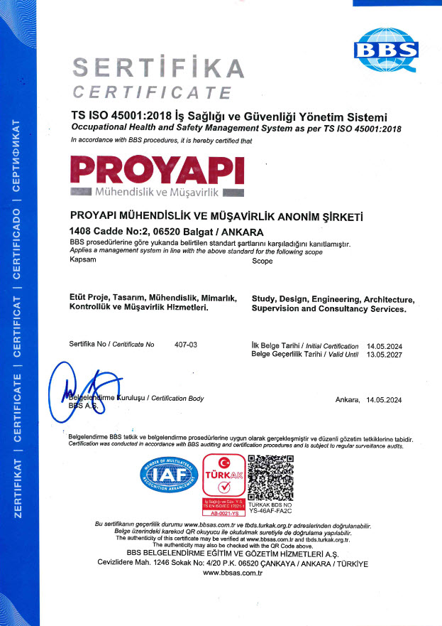 С решениями, которые она предлагает, и успешно завершенными проектами в области автомагистралей, дорог, железных дорог, легкорельсовых систем, интеллектуальных транспортных систем, электромеханических проектов, плотин и водных сооружений, геологических исследований и геотехнических решений, морских и прибрежных проектов, надстройки и других инфраструктурных областей, PROYAPI продемонстрировала свою приверженность принципам устойчивого развития с помощью экологически чистых и инновационных подходов, а также сильной технической базы.